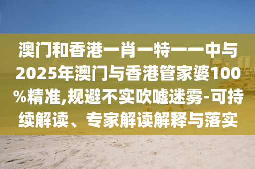澳門和香港一肖一特一一中與2025年澳門與香港管家婆100%精準的可持續解讀、專家解讀解釋與落實