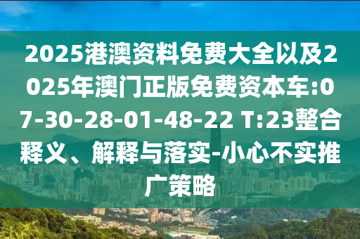 2025港澳資料免費大全以及2025年澳門正版免費資本車:07-30-28-01-48-22 T:23的整合釋義、解釋與落實