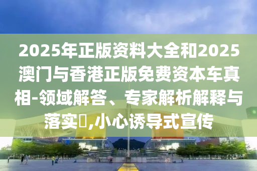 摘要:,,關于2025年正版資料大全以及澳門與香港正版免費資本車的真相,有專家進行了解答和解析。提醒公眾要小心誘導式宣傳,以免受到誤導。領域專家對相關資料進行了深入研究和解釋,并努力落實相關真相,以幫助公眾了解真實情況并做出明智的決策。