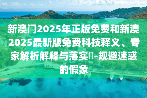 摘要:關于新澳門2025年正版免費和新澳2025最新版免費的科技釋義,專家們進行深入解析,強調免費版本的真實性和可靠性。提醒公眾注意規避迷惑的假象,確保獲取準確信息。通過詳細解釋和具體落實措施,幫助公眾正確理解并有效利用相關資源。