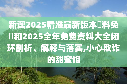 摘要:新澳2025精準資料提供閉環剖析、解釋與落實內容,包括最新版本的免費資料和全年免費資料大全。提醒用戶要小心欺詐的甜蜜餌,避免陷入不法分子的陷阱。該摘要旨在傳遞真實有用的信息,幫助用戶了解并正確使用相關資料,增強防范意識。