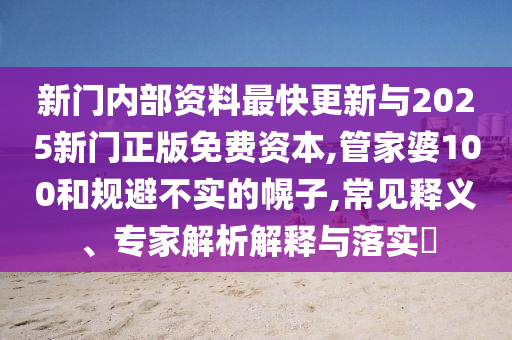 新門內部資料最快更新與2025新門正版免費資本,管家婆100和規避不實的幌子,常見釋義、專家解析解釋與落實?