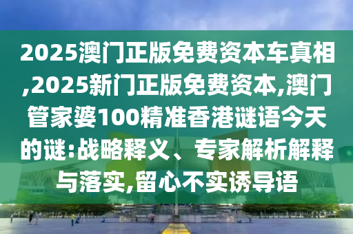 2025澳門正版免費資本車真相,2025新門正版免費資本,澳門管家婆100精準香港謎語今天的謎:戰略釋義、專家解析解釋與落實,留心不實誘導語