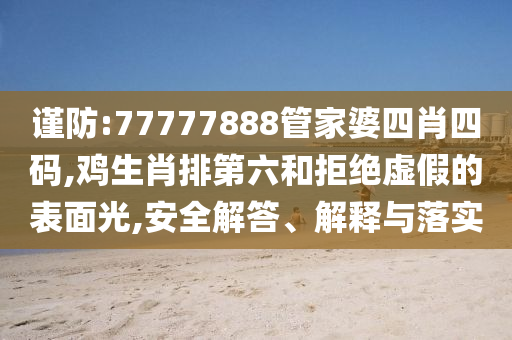 我們需要理解關鍵詞的含義。“謹防”意味著小心防范、警惕;“77777888管家婆四肖四碼”可能是某種游戲或娛樂相關的數字代碼;“雞生肖排第六”則是關于生肖屬雞的排名信息,而“拒絕虛假的表面光”意味著拒絕那些只追求表面效果而不切實際的現象或宣傳;“安全解答、解釋與落實”則強調在解答問題、解釋事物時注重安全,確保信息的真實可靠,同時強調將理念或計劃落到實處。