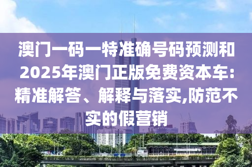 澳門一碼一特準確號碼預測和2025年澳門正版免費資本車:精準解答、解釋與落實,防范不實的假營銷