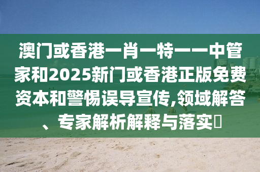 澳門或香港一肖一特一一中管家和2025新門或香港正版免費資本和警惕誤導宣傳,領域解答、專家解析解釋與落實?