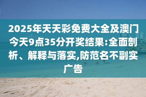 摘要:本文介紹了關于2025年天天彩免費大全及澳門今天9點35分開獎結果的全面剖析、解釋與落實的內容。文章強調了對名不副實廣告的防范措施,確保信息的真實性和可靠性。通過深入分析和解釋相關開獎結果,幫助讀者更好地理解并防范可能的虛假廣告,保護自身權益。
