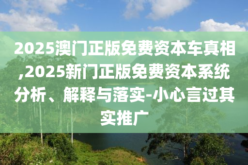 2025澳門正版免費資本車真相,2025新門正版免費資本系統分析、解釋與落實-小心言過其實推廣