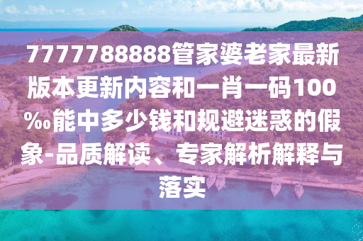本文將圍繞您提供的關鍵詞:“7777788888管家婆老家最新版本更新內容”、“一肖一碼100%能中多少錢”、“規避迷惑的假象”、“品質解讀”、“專家解析”進行釋義、解釋與落實,在此,特別提醒廣大公眾,警惕虛假宣傳,理性對待各類信息。