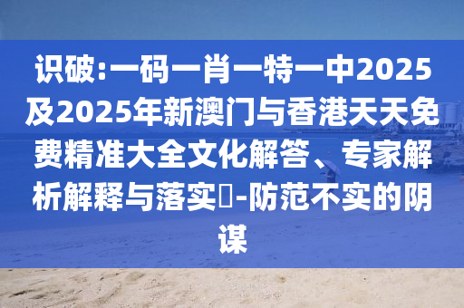 識破:一碼一肖一特一中2025及2025年新澳門與香港天天免費精準大全文化解答、專家解析解釋與落實?-防范不實的陰謀